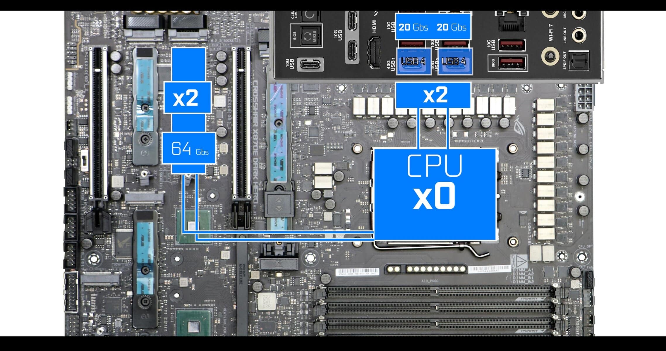 - x1 PCIe 5.0 NVMEs x4 CPU Lanes. Upto 128 Gbs (shared lanes with back IO USB 4.0 plugs)