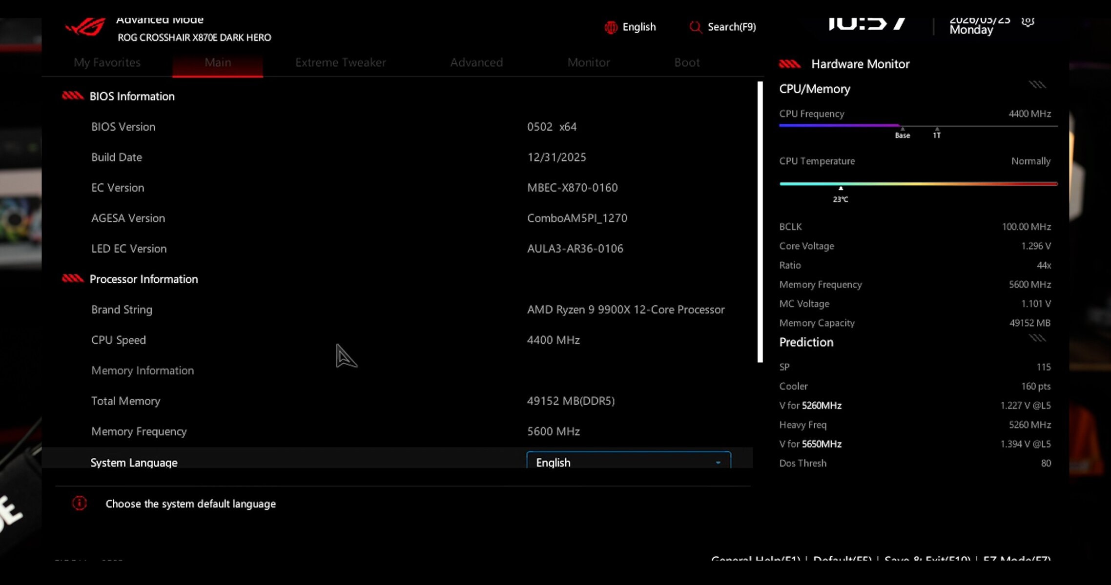 My Ryzen 9 9900X barely stayed below the 45°C resistance point. Compared to its more expensive ROG CROSSHAIR X870E GLACIAL, the DARK HERO shows much better thermals thanks to much larger cooling blocks, coupled to a slightly less powerful VRM.
