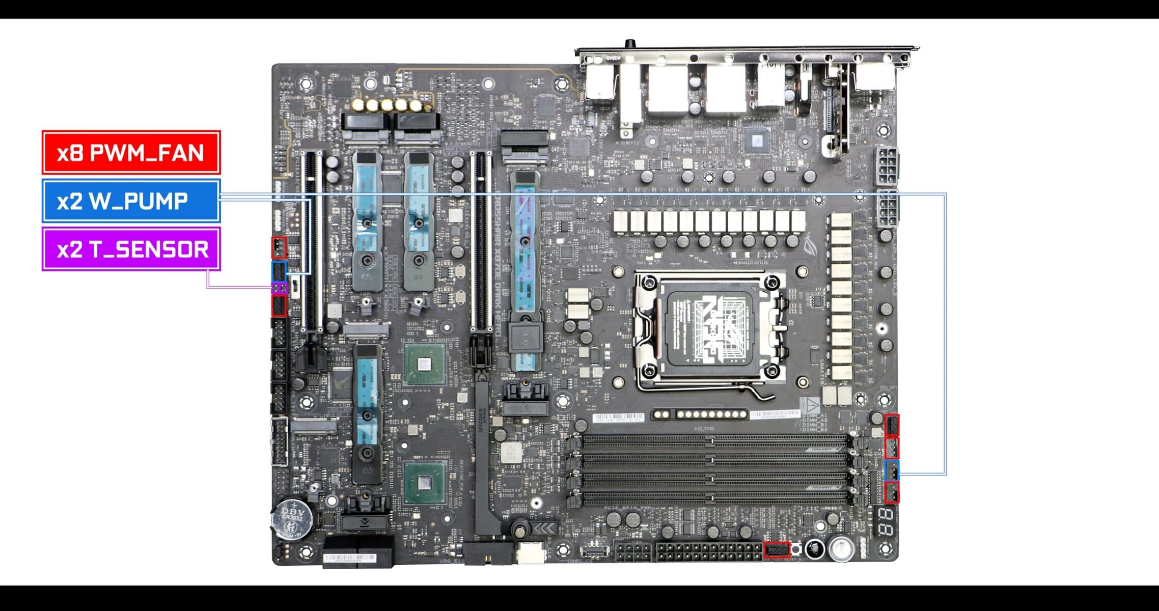 In a more classic registry we got our usual PWM FANS and Water PUMP connectors for anything spanning from good air flow to a custom water cooling situation.