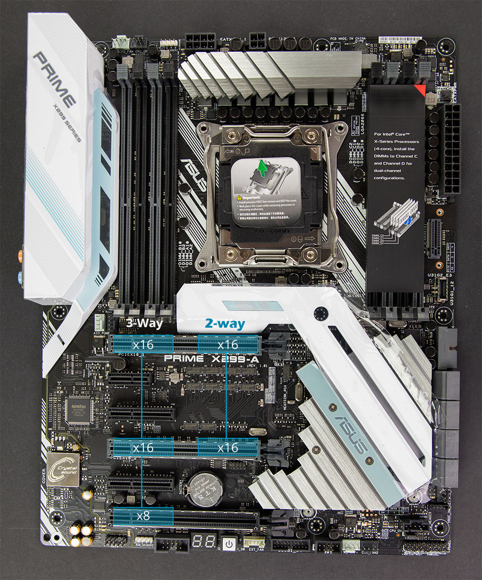 The Prime X299 A SUPPORTS 3 way SLI and 3 way CFX!